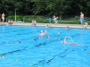 Es war ein sonnige Tag im gut besuchten Bad. Als besonderes Ereignis fand zeitgleich das Sommerfest des Fördervereins Niederkrüchtener Bäder statt, die neben einer Spieleolympiade für Kinder, auch Kaffee und Kuchen zur Stärkung anboten.